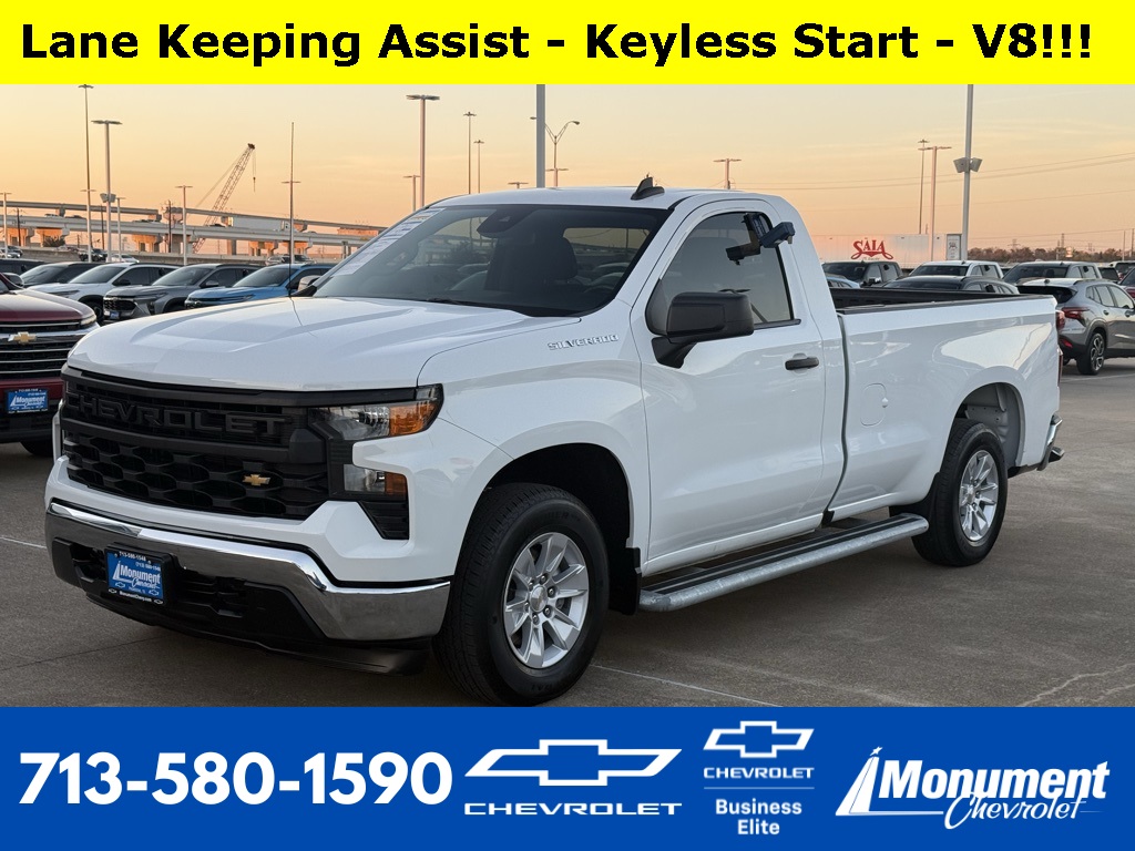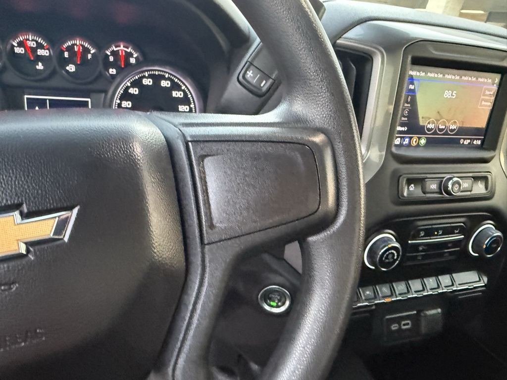 0 rpm); featuring available Dynamic Fuel Management that enables the engine to operate in 17 different patterns between 2 and 8 cylinders, depending on demand, to optimize power delivery and efficiency, 17 X 8 (43.2 CM X 20.3 CM) BRIGHT SILVER PAINTED ALUMINUM, AUDIO SYSTEM, CHEVROLET INFOTAINMENT 3 SYSTEM 7 diagonal HD color touchscreen, AM/FM stereo, Bluetooth® audio streaming for 2 active devices, voice command pass-through to phone, Wireless Apple CarPlay® and Wireless Android Auto® compatibility (STD), TRANSMISSION, ELECTRONICALLY CONTROLLED with overdrive and tow/haul mode. Includes Cruise Grade Braking and Powertrain Grade Braking. Chevrolet Work Truck with Summit White exterior and Jet Black interior features a 8 Cylinder Engine with 310 HP at 5600 RPM*.