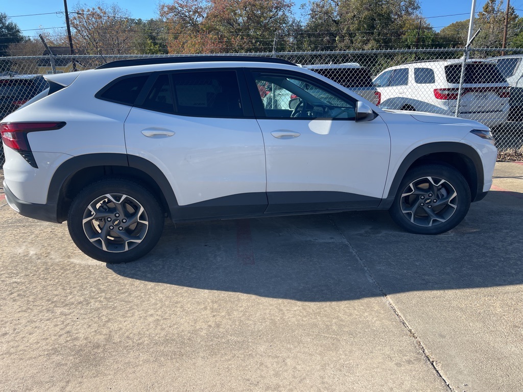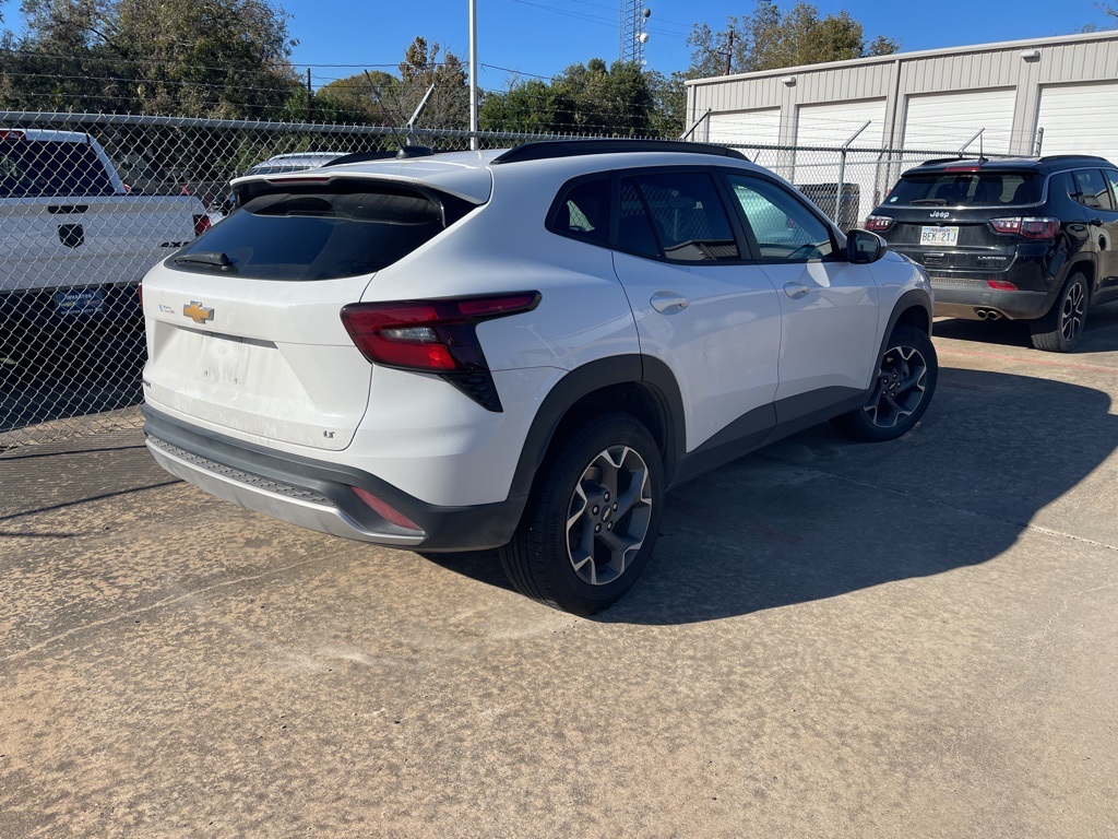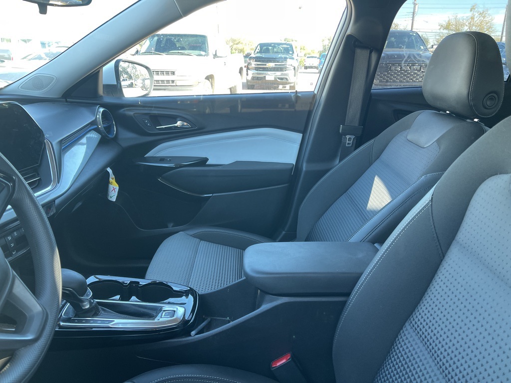 otec Turbo DOHC DI w/VVT 6-Speed Automatic FWD License Plate Front Mounting Package, Preferred Equipment Group 1LT, 2-Way Adjustable Front Head Restraints, 3.50 Final Drive Axle Ratio, 4-Way Manual Front Passenger Seat Adjuster, 4-Wheel Disc Brakes, 6 Speakers, 6-Speaker Audio System Feature, 6-Way Manual Driver Seat Adjuster, ABS brakes, Air Conditioning, Alloy wheels, AM/FM radio: SiriusXM, Auto High-beam Headlights, Automatic temperature control, Brake assist, Bumpers: body-color, Cloth/Evotex Seat Trim, Compass, Delay-off headlights, Driver door bin, Driver vanity mirror, Dual front impact airbags, Dual front side impact airbags, Electronic Stability Control, Emergency communication system: OnStar and Chevrolet connected services capable, Exterior Parking Camera Rear, Front anti-roll bar, Front Bucket Seats, Front Center Armrest, Front reading lights, Front wheel independent suspension, Fully automatic headlights, Illuminated entry, Low tire pressure warning, Occupant sensing airbag, Outside temperature display, Overhead airbag, Overhead console, Panic alarm, Passenger door bin, Passenger vanity mirror, Power door mirrors, Power steering, Power windows, Premium audio system: Chevrolet Infotainment 3, Radio data system, Radio: Audio System w/AM/FM, Rear window defroster, Rear window wiper, Remote keyless entry, Security system, SiriusXM, Speed control, Split folding rear seat, Spoiler, Steering wheel mounted audio controls, Tachometer, Telescoping steering wheel, Tilt steering wheel, Traction control, Trip computer, Variably intermittent wipers, and Wheels: 17" Gray-Painted Machined Aluminum. 2024 Chevrolet Trax LT